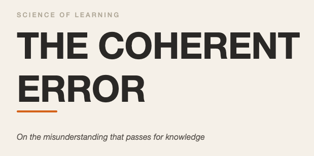 Chi, Slotta, and de Leeuw (1994) documented this in science learning: learners categorize scientific concepts into the wrong ontological type and this mismatch generates explanations with internal logic built on a false foundation. A learner who treats electrical current as a substance rather than a rate will solve certain problems correctly and others wrongly, with no internal awareness of where the model breaks down.